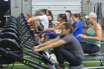 Row, Hang Power Cleans, Step back Lunges, over the bar burpees